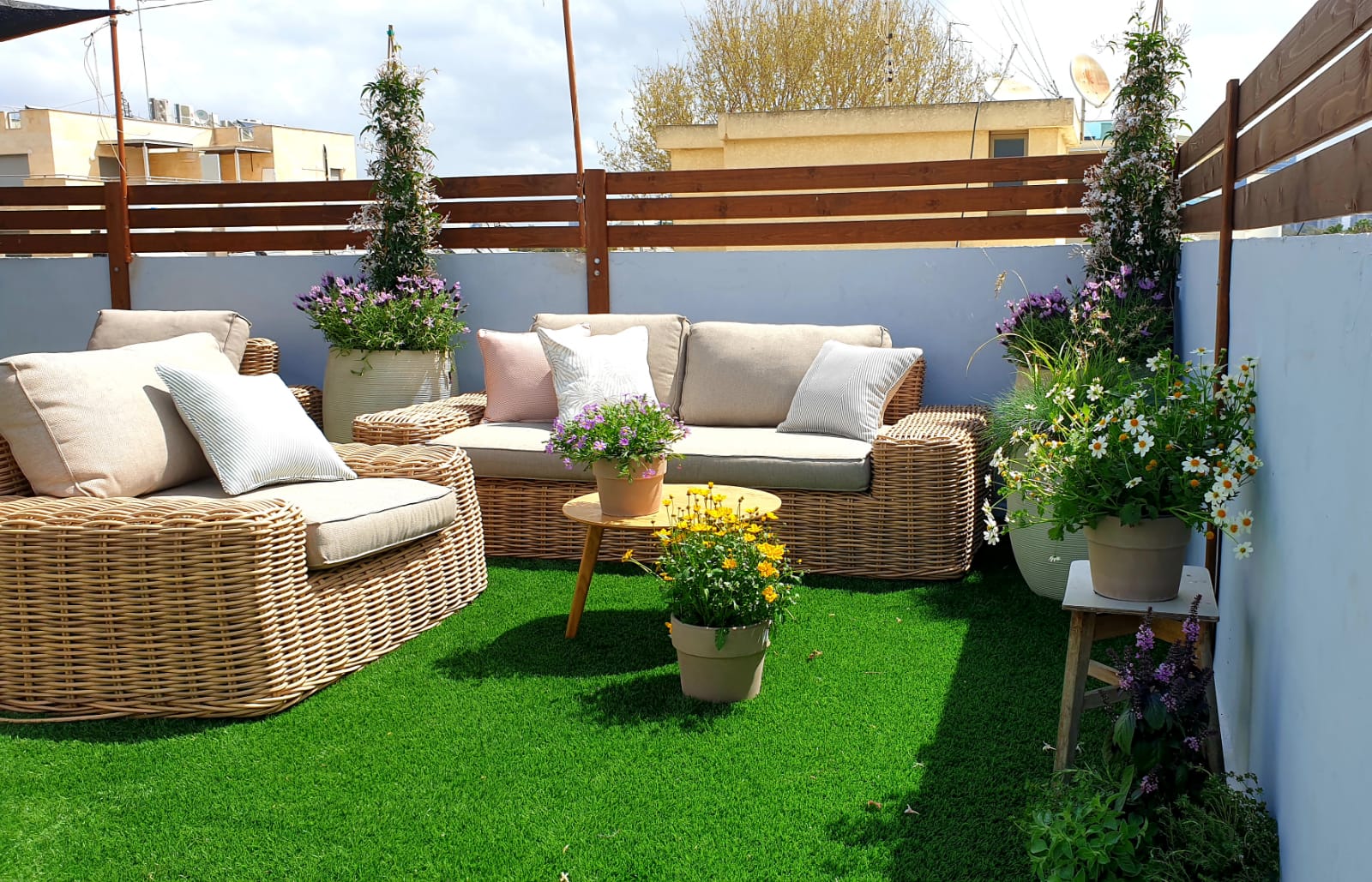 אנחנו רואות את המרפסת כחלק בלתי נפרד מהבית, המשך הסלון ומאמינות בכך שתכנון ועיצוב נכון של המרפסת